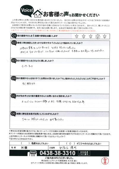 葛飾区H様の現地調査終了後のアンケートをご紹介