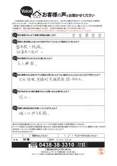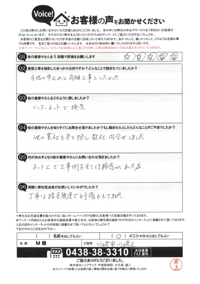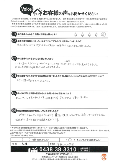 ウレタン密着工法で陸屋根防水工事、君津市泉のお客様よりアンケートをいただきました