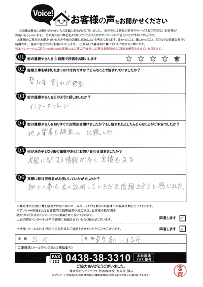 八王子市上野町にて屋根の葺き替え工事を実施しました!お客様から頂戴したアンケート内容をご紹介いたします。