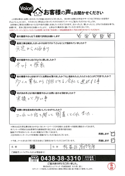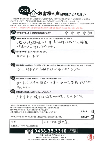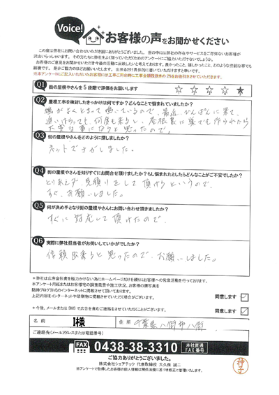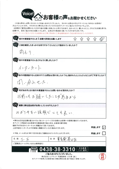 雨漏り調査のご感想|印西市木下東のお客様インタビュー