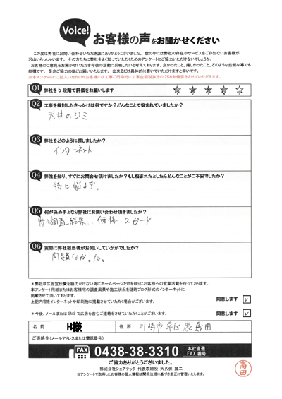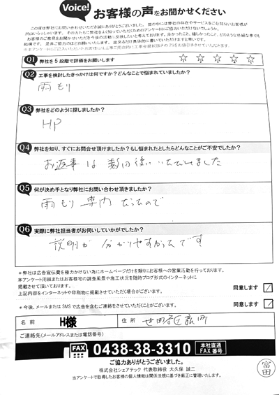 座間市のお客様より天窓雨漏り修理についてアンケートをいただきました