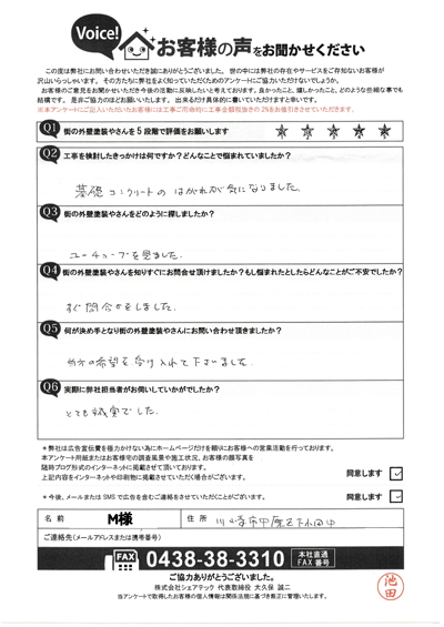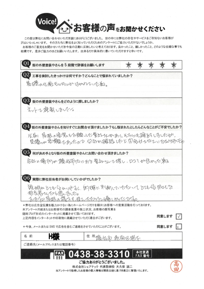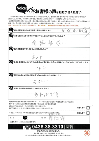 青梅市新町で屋根カバー・外壁塗装工事をご依頼のお客様アンケート