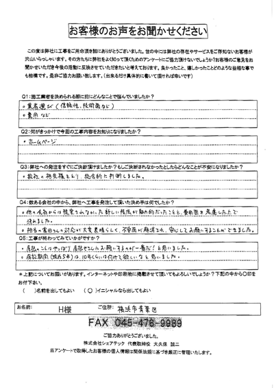 横浜市青葉区|棟取り直し工事をされたH様