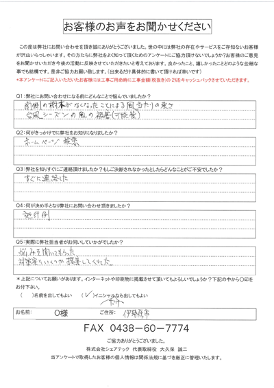 伊勢原市|今後の強風対策のご相談をいただいたO様