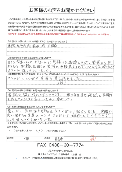 木更津市|お風呂場からの雨漏りで見積り依頼をされたN様