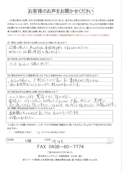これまでにご依頼いただいた、お客様の声をまとめました。屋根工事屋根塗装外壁塗装をお考えの方はぜひ、参考にしてください!