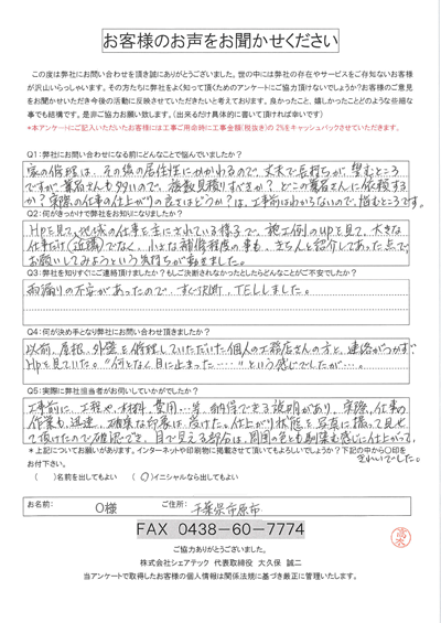 市原市|屋根周りの不具合で点検依頼をいただきましたO様