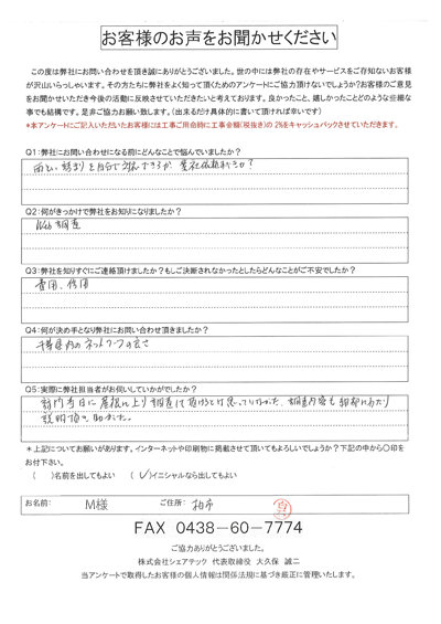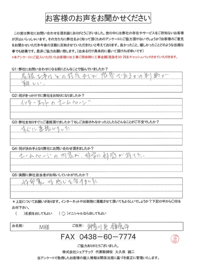 他社よりもよく詳細に調査の上、わかり易い説明をいただきました。