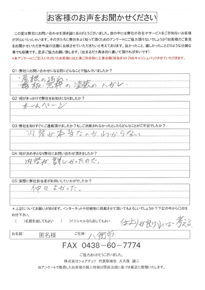 これまでにご依頼いただいた、お客様の声をまとめました。屋根工事屋根塗装外壁塗装をお考えの方はぜひ、参考にしてください!