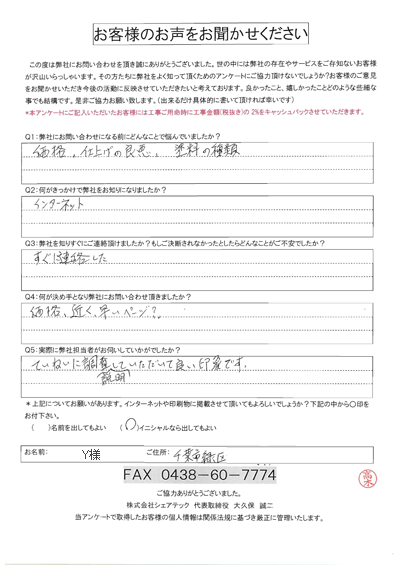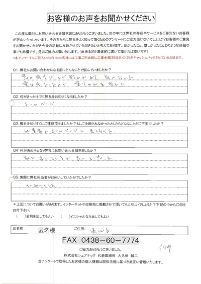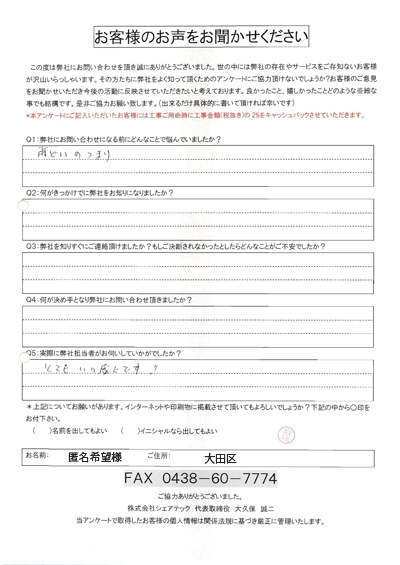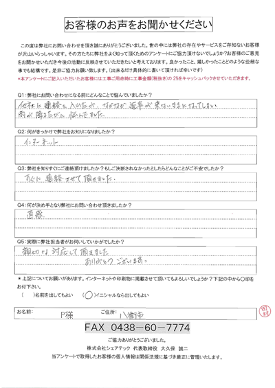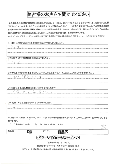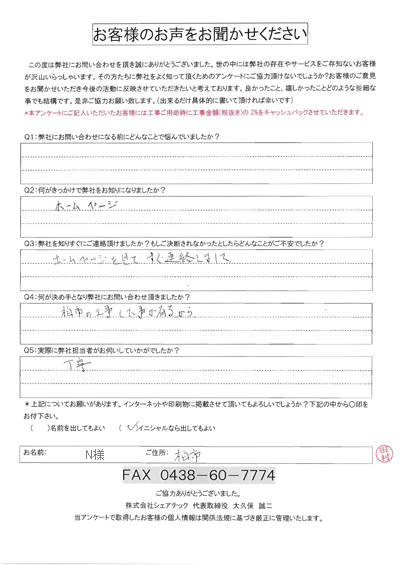 今迄の施工者とのちがいを感じました。 今後ともよろしく!!