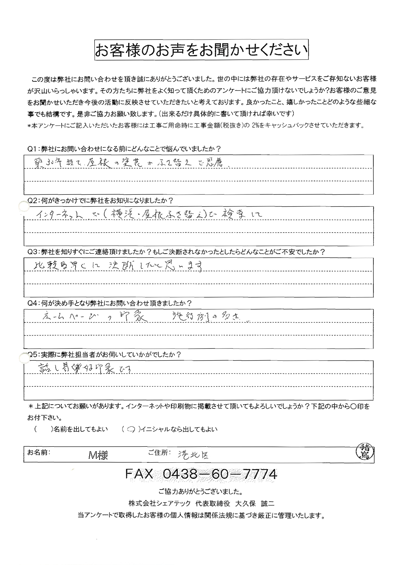 これまでにご依頼いただいた、お客様の声をまとめました。屋根工事屋根塗装外壁塗装をお考えの方はぜひ、参考にしてください!