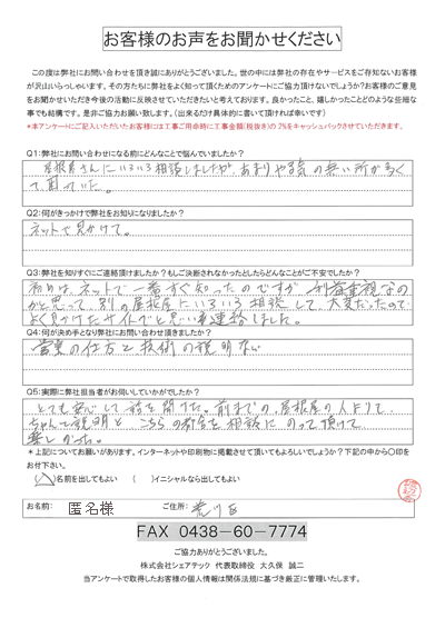 千葉市中央区|アパート屋根補修依頼をされましたK様
