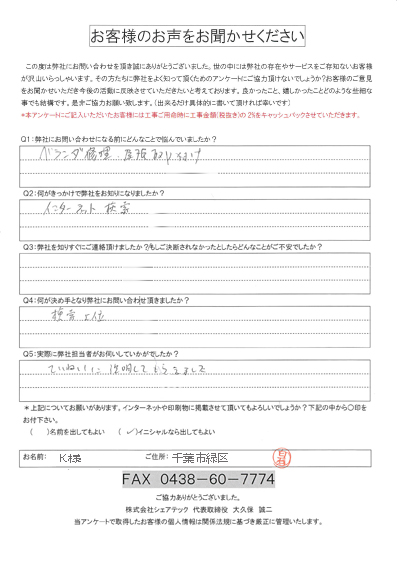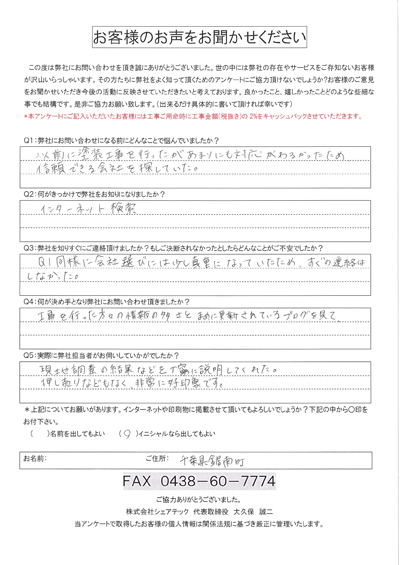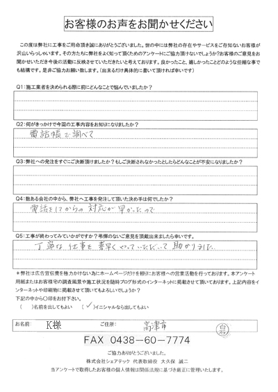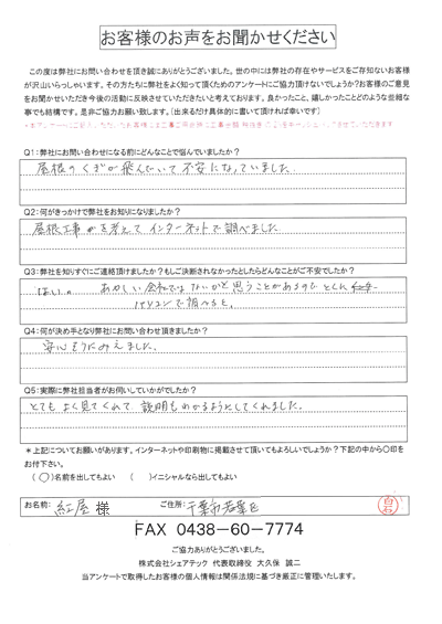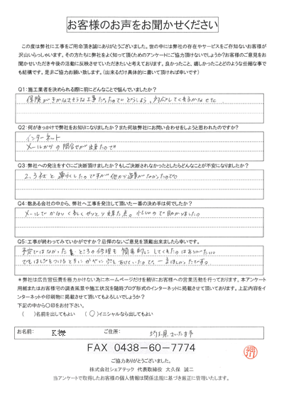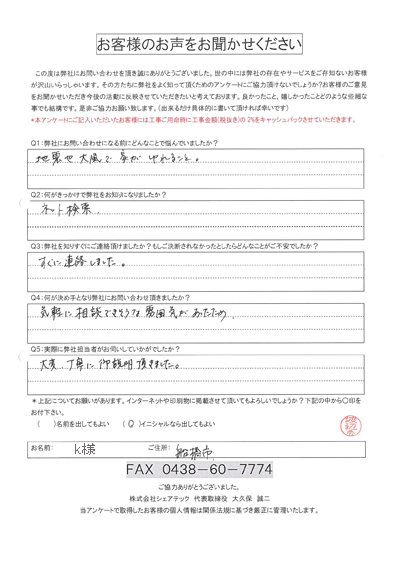 船橋市|屋根葺き替え前の点検依頼をしたK様