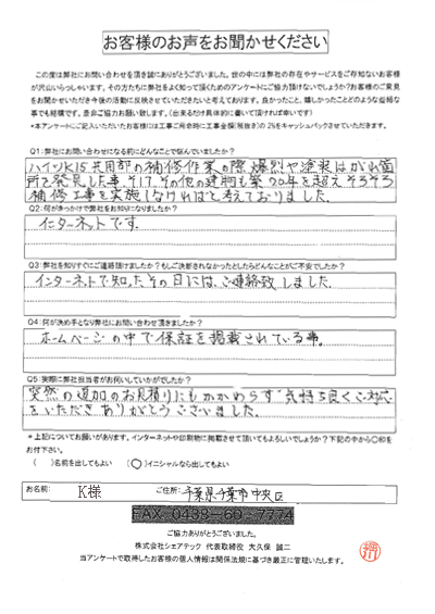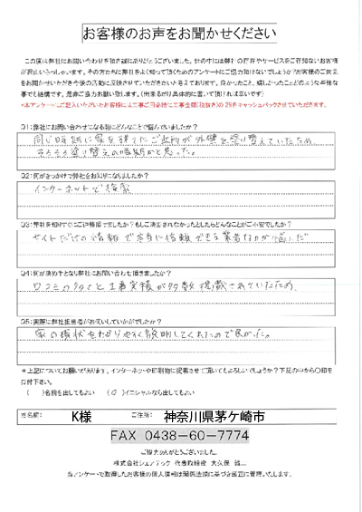 茅ヶ崎市で外壁塗装・屋根塗装点検を行ったK様の声