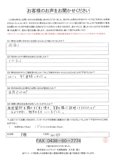 袖ケ浦市|雨漏り点検依頼をされましたF様