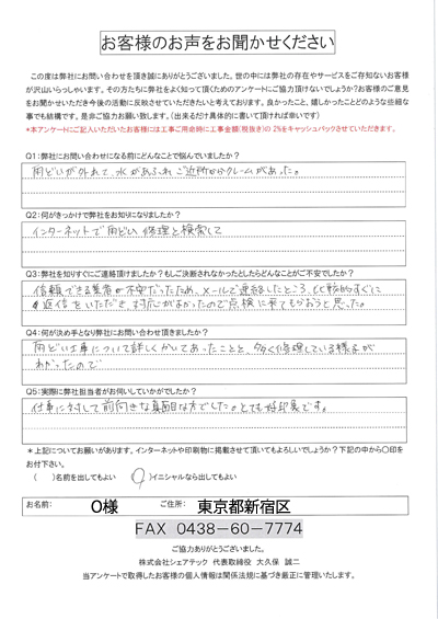新宿区で雨どい交換工事の点検を行ったO様の声