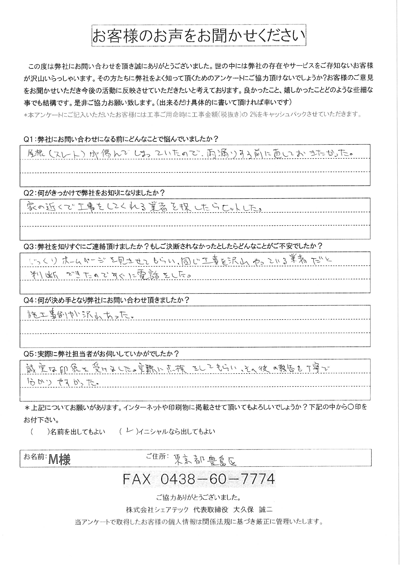 豊島区で屋根葺き替え工事前の点検を行ったM様の声