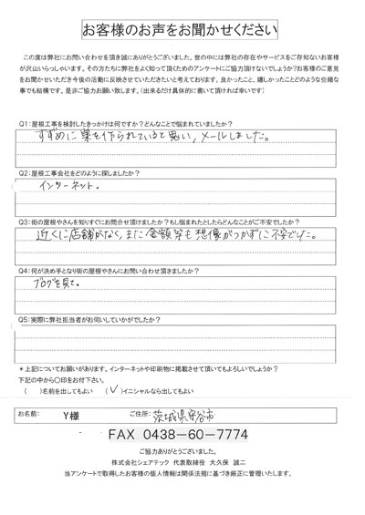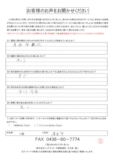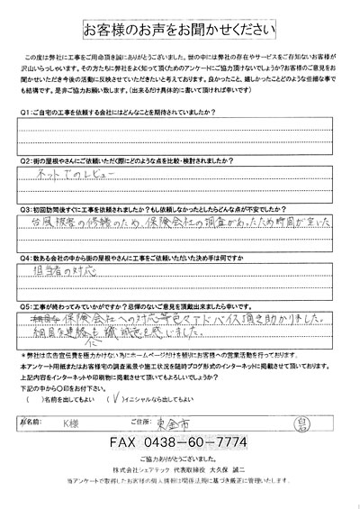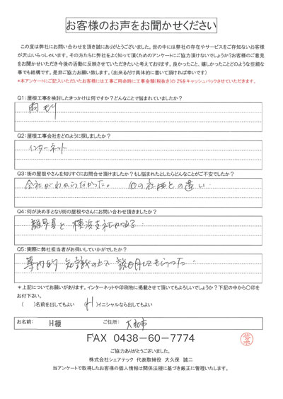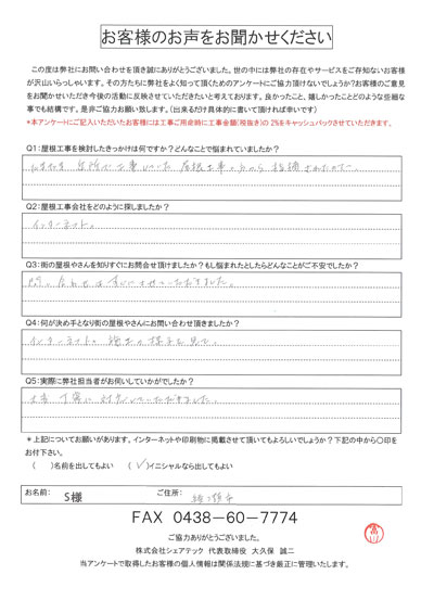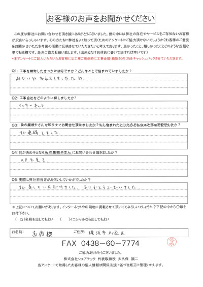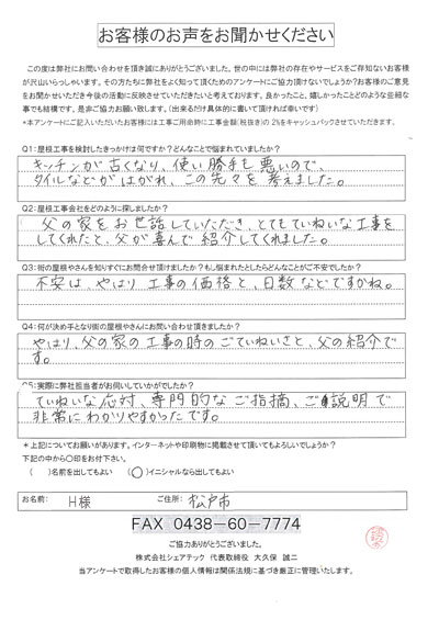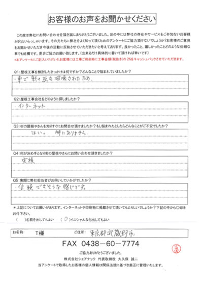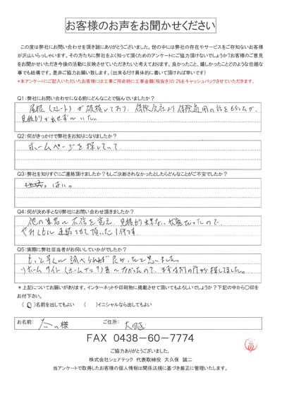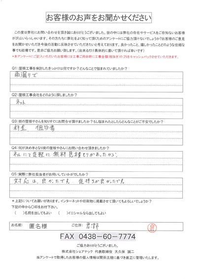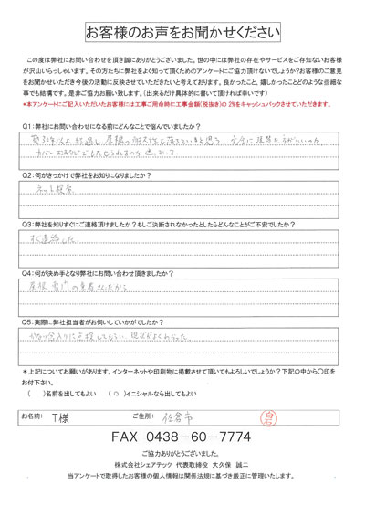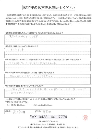 佐倉市|屋根・雨樋補修工事のお問い合わせをしたT様