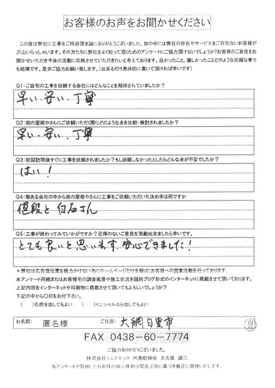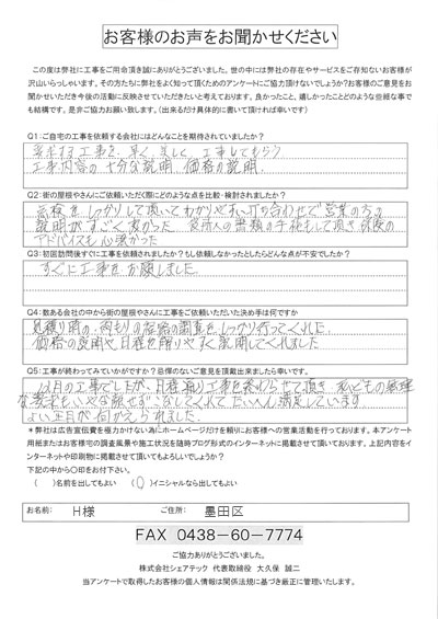 これまでにご依頼いただいた、お客様の声をまとめました。屋根工事屋根塗装外壁塗装をお考えの方はぜひ、参考にしてください!