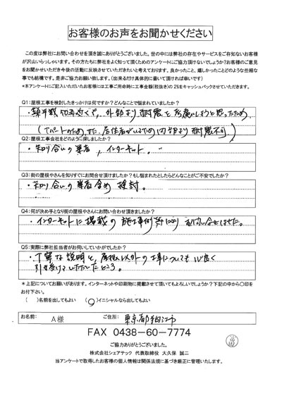 狛江市|アパートの屋根葺き替え工事依頼をしたA様