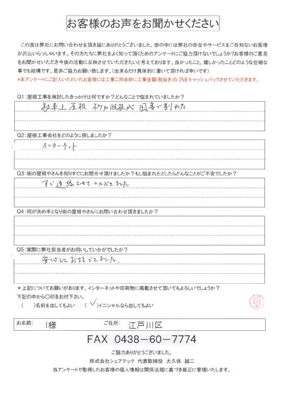 浦安市|屋根のメンテナンスと外壁塗装依頼をした匿名様
