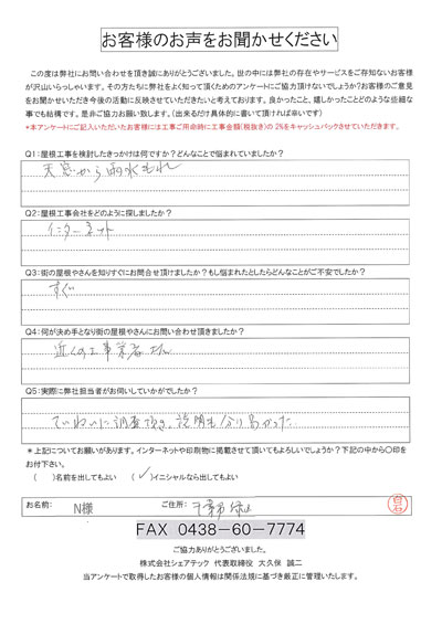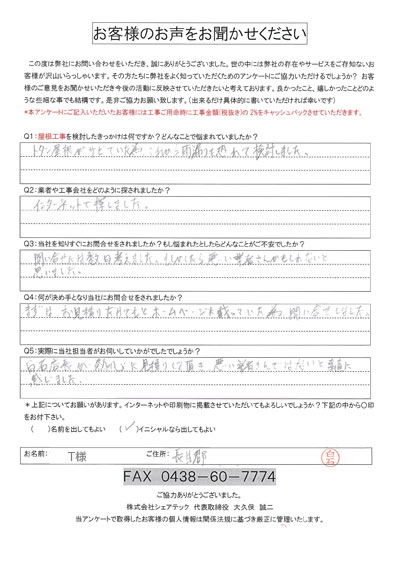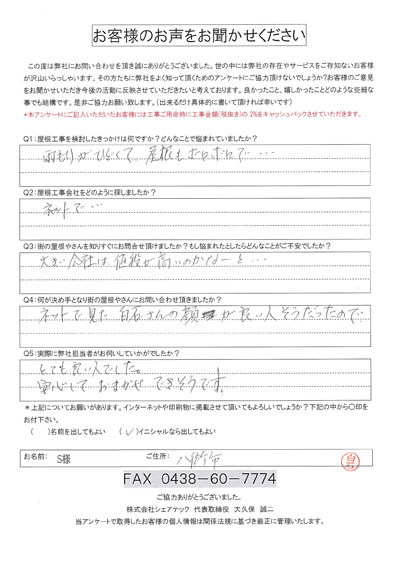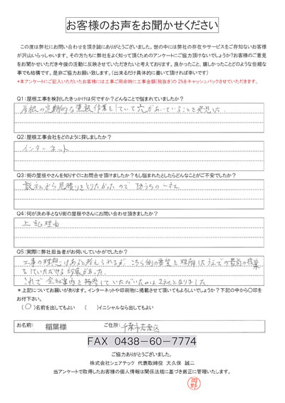 これまでにご依頼いただいた、お客様の声をまとめました。屋根工事屋根塗装外壁塗装をお考えの方はぜひ、参考にしてください!