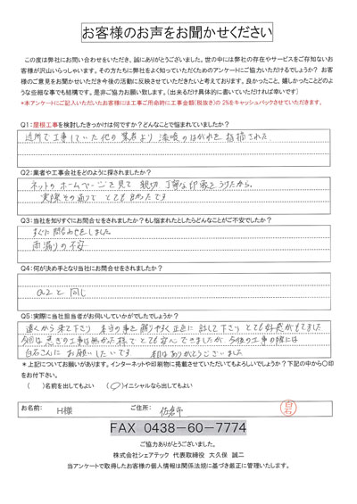 今迄の施工者とのちがいを感じました。今後ともよろしく!!