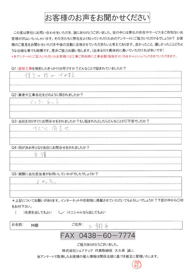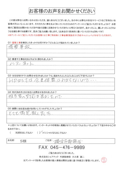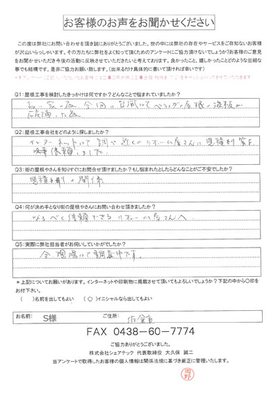 これまでにご依頼いただいた、お客様の声をまとめました。屋根工事屋根塗装外壁塗装をお考えの方はぜひ、参考にしてください!