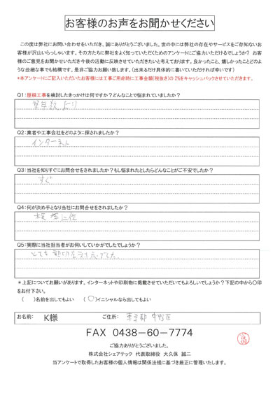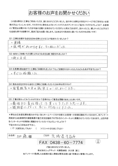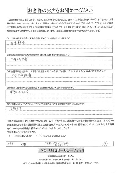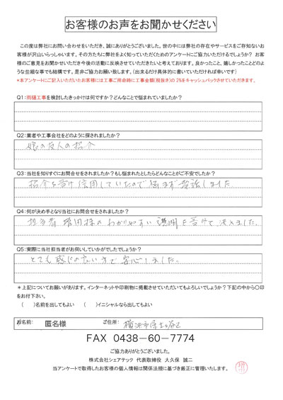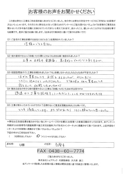 屋根以外もお願い出来ると聞き、何かあったら又お願いしようと思いました