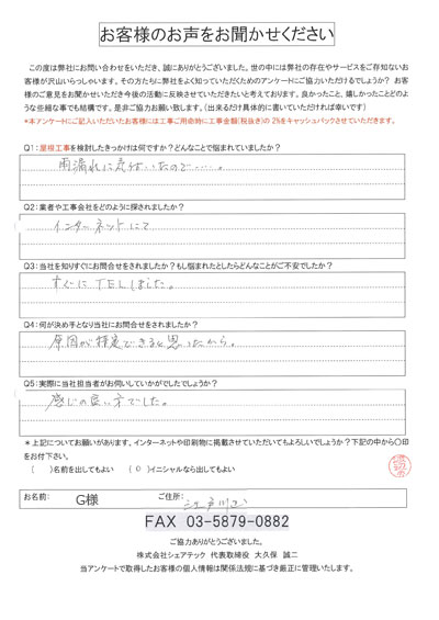 各工事担当者の方も若くて礼儀正しく好感が持てた。