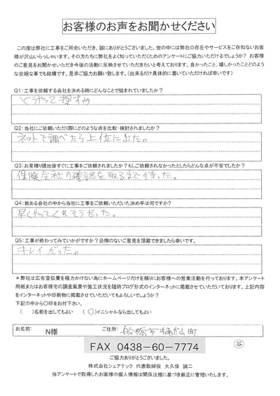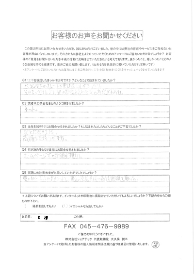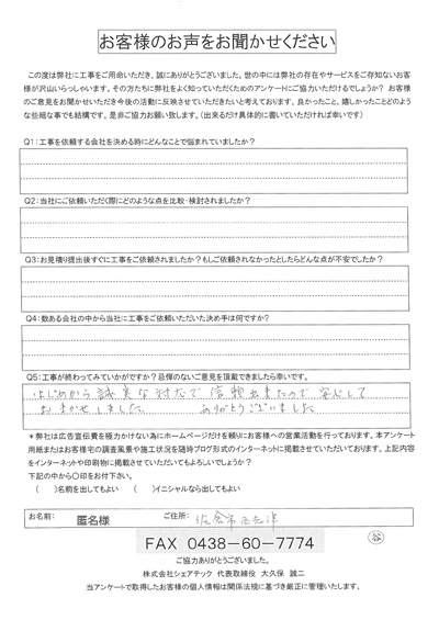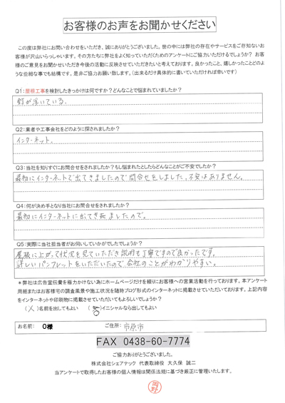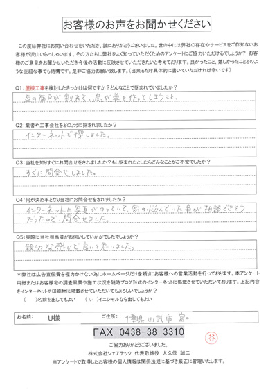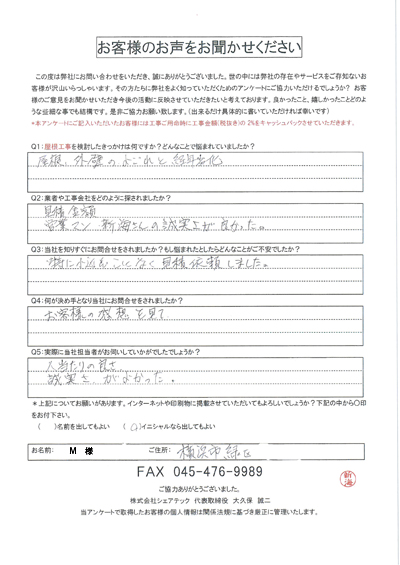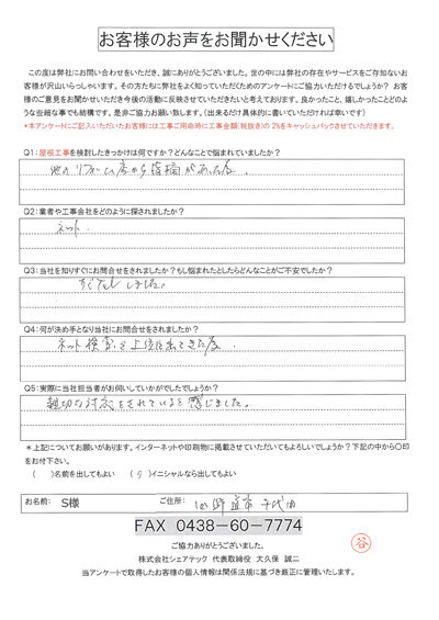 これまでにご依頼いただいた、お客様の声をまとめました。屋根工事屋根塗装外壁塗装をお考えの方はぜひ、参考にしてください!