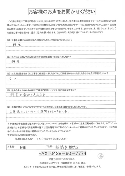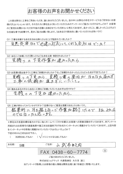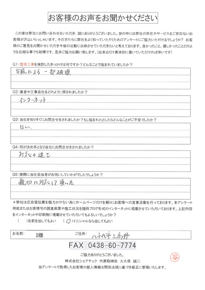 インターネットでお願いしても手ぬきなしでやってもらったと聞いた。