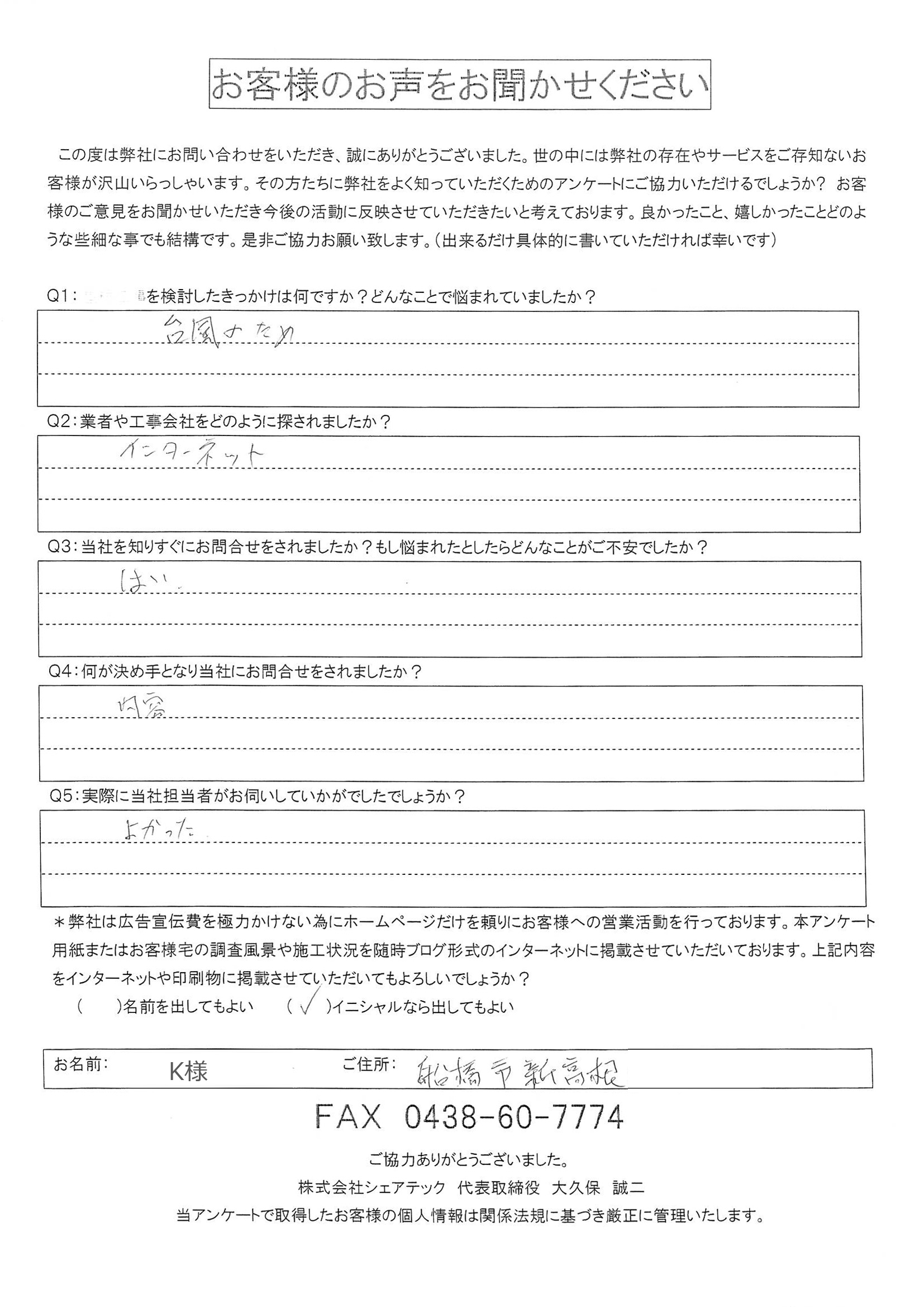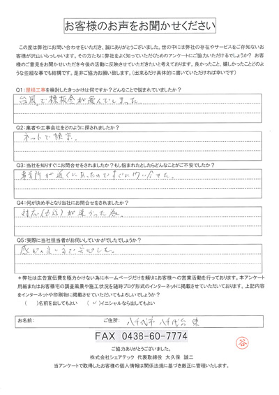 我孫子市中峠へ台風の影響で壊れた屋根の修理依頼