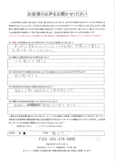 屋根塗装・外壁塗装をご依頼いただいた杉並区のO様より、竣工後の感想を伺いました。