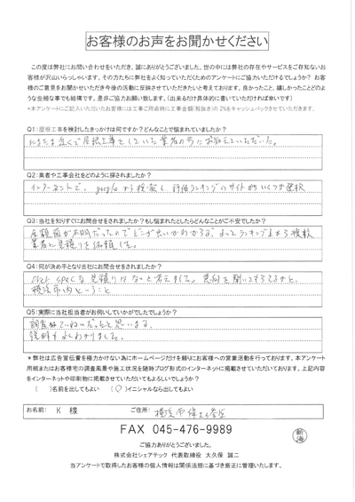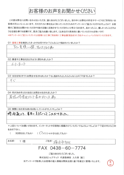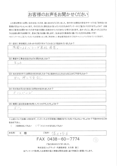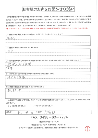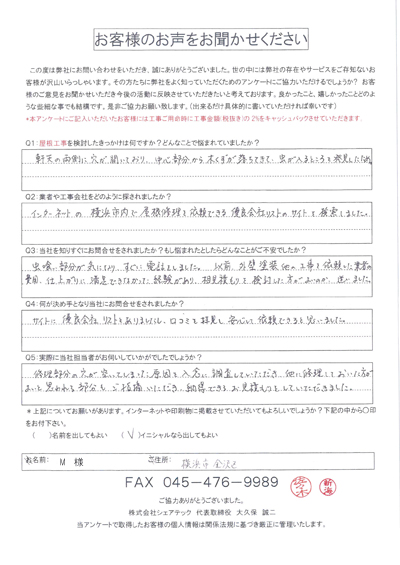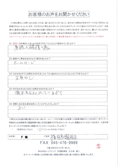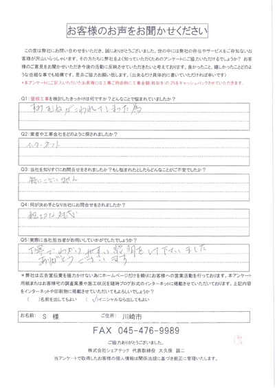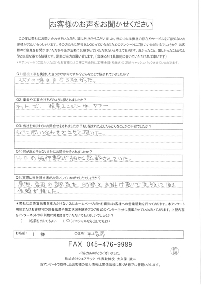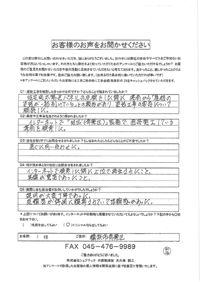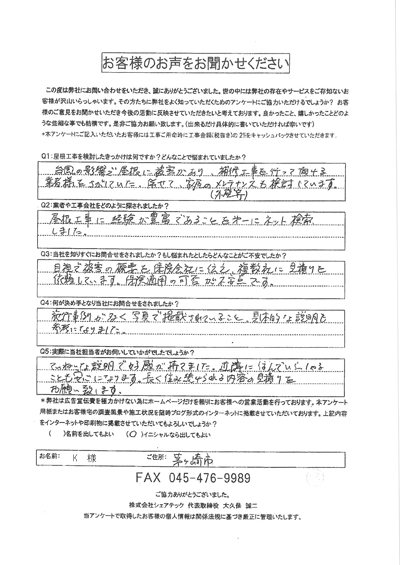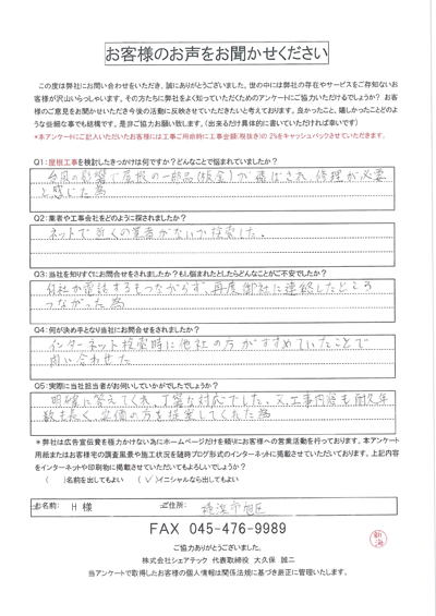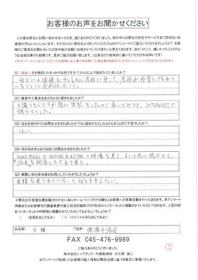 これまでにご依頼いただいた、お客様の声をまとめました。屋根工事屋根塗装外壁塗装をお考えの方はぜひ、参考にしてください!