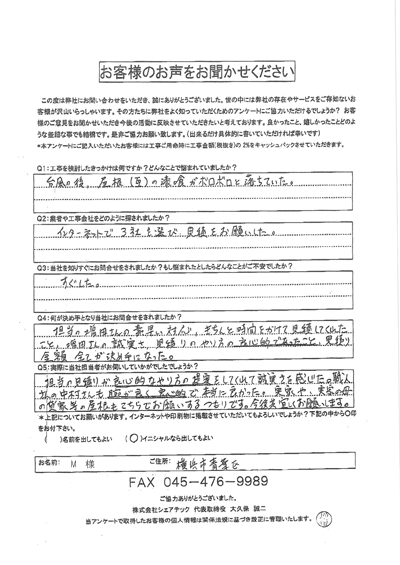 横浜市神奈川区にて雨漏り発生!M様邸にてサッシを調査いたしました