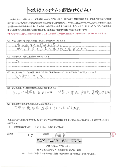 習志野市 雨漏り補修 A様邸