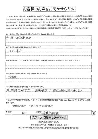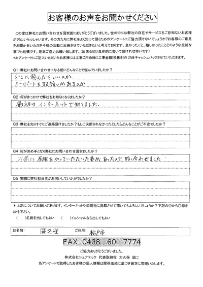松戸市でカーポート補修をご相談いただいた匿名様
