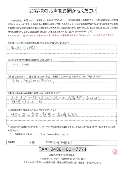 千葉市稲毛区 雨漏り補修 M様邸