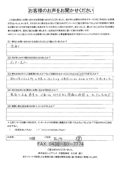 松戸市 雨漏り補修 N様邸