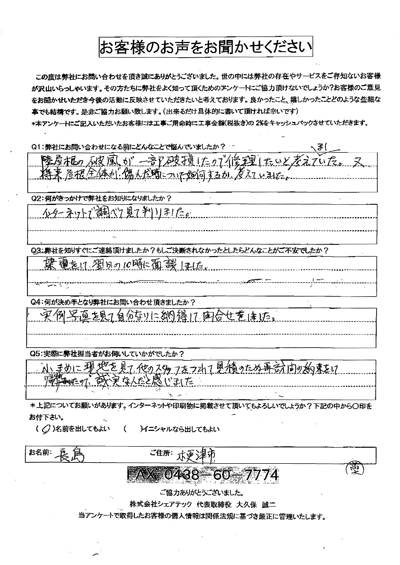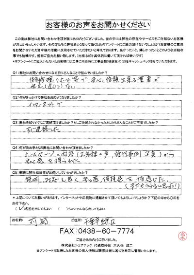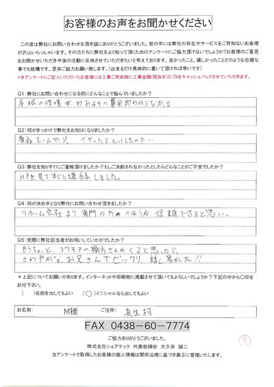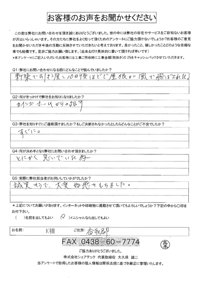 これまでにご依頼いただいた、お客様の声をまとめました。屋根工事屋根塗装外壁塗装をお考えの方はぜひ、参考にしてください!