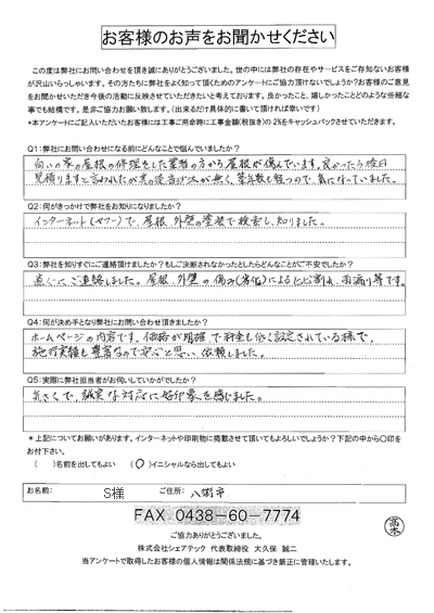 八街市 屋根塗装・屋根補修 S様邸