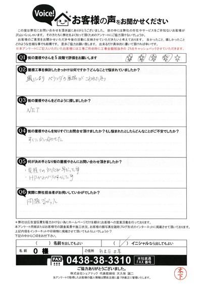 屋根の調査を行なわせていただいた山武郡芝山町飯櫃のお客様