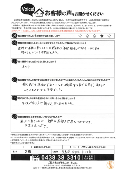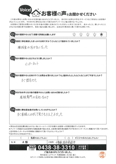 棟板金交換をご提案、柏市南逆井A様のアンケートをご紹介