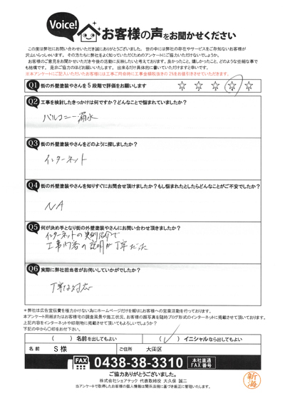 市川市八幡で雨樋交換とカーポートポリカ工事、S様のアンケート