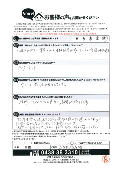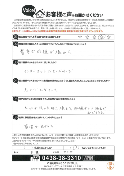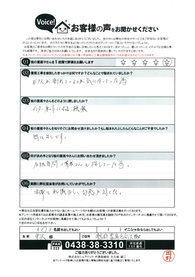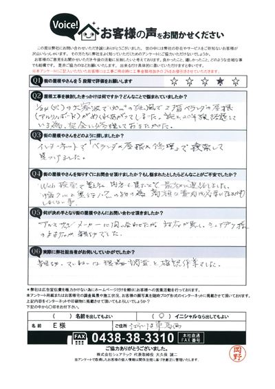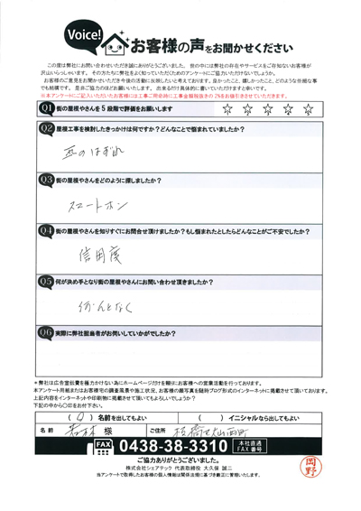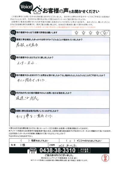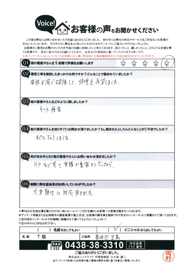 江戸川区松島のT様へ屋根カバー工法のご提案、工事後のアンケート