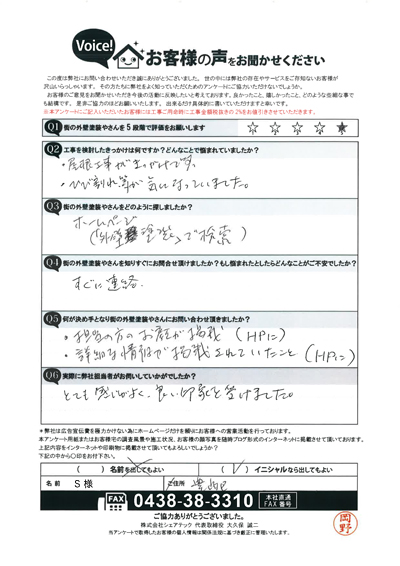 現地調査後のアンケートをご紹介、雨樋交換をご検討中の江戸川区一之江S様