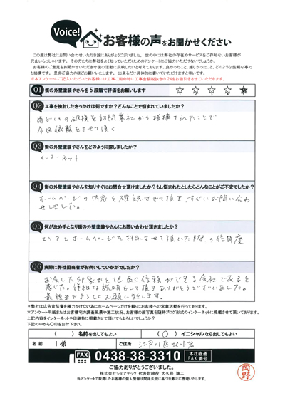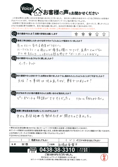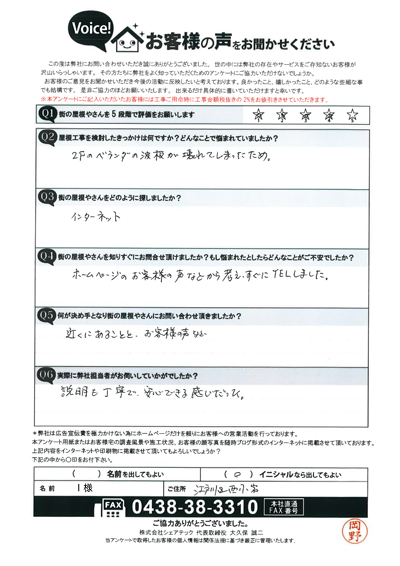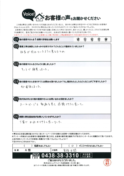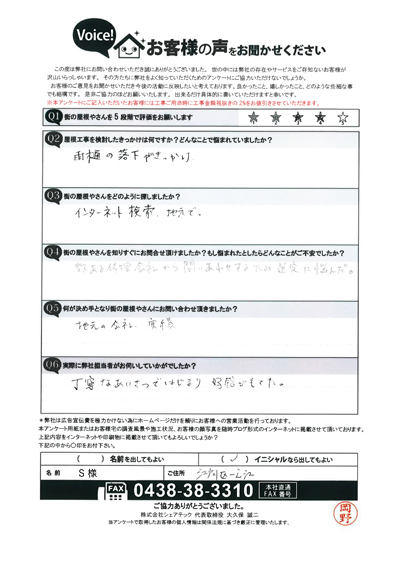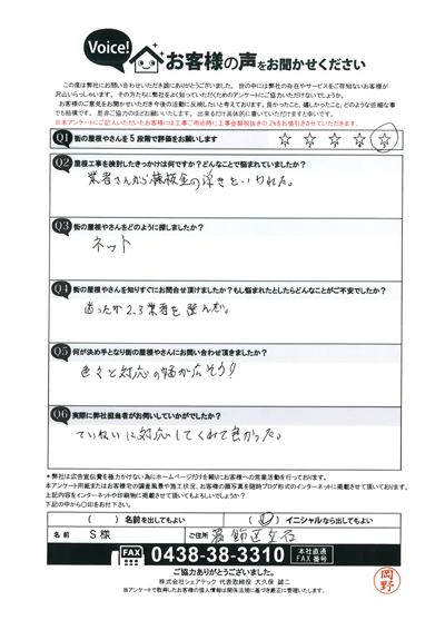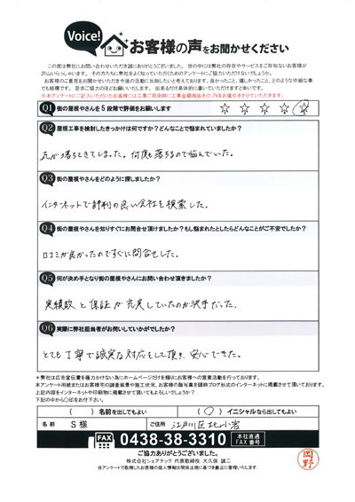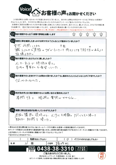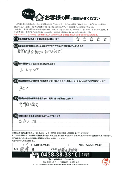 屋根葺き替え工事を行なわせていただいた市原市ちはら台西M様の声