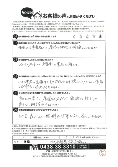 練馬区西大泉にて屋根葺き替え工事、お客様のアンケート