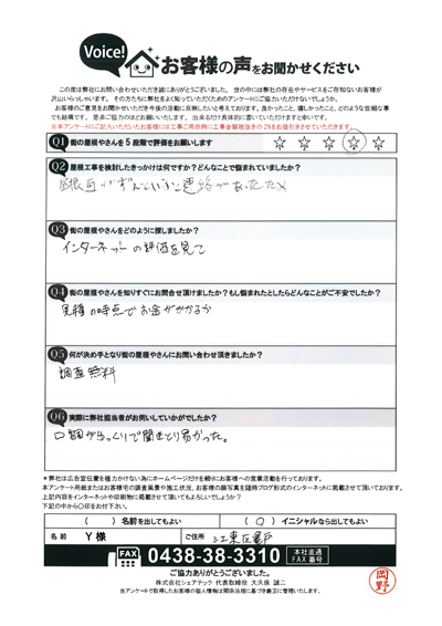墨田区立花S様邸の現地調査が終了、アンケートをいただきました